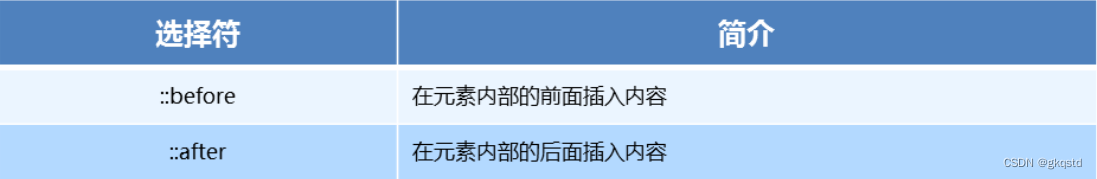 before和after必须有content属性before在内容前面,after 在内容后面before和after创建的是一个元素,但是属于行内元素- 创建出来的元素在