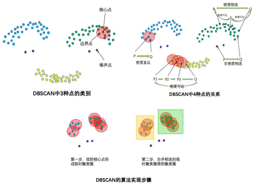 点O的k近邻距离=第 k个最近的点跟点O之间的距离。