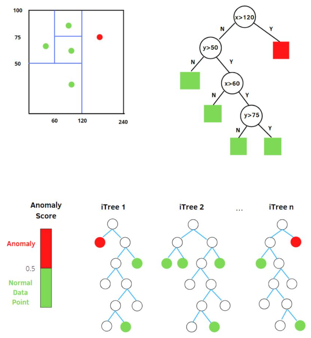 One-Class SVM,这个算法的思路非常简单,就是寻找一个超平面将样本中的正例圈出来,预测就是用这个超平面做决策,在圈内的样本就认为是正样本,在圈外的样本是负样本,用在异常检测中,负样本可看作异常样本。它属于无监督学习,所以不需要标签。