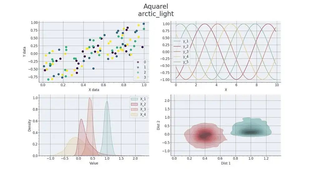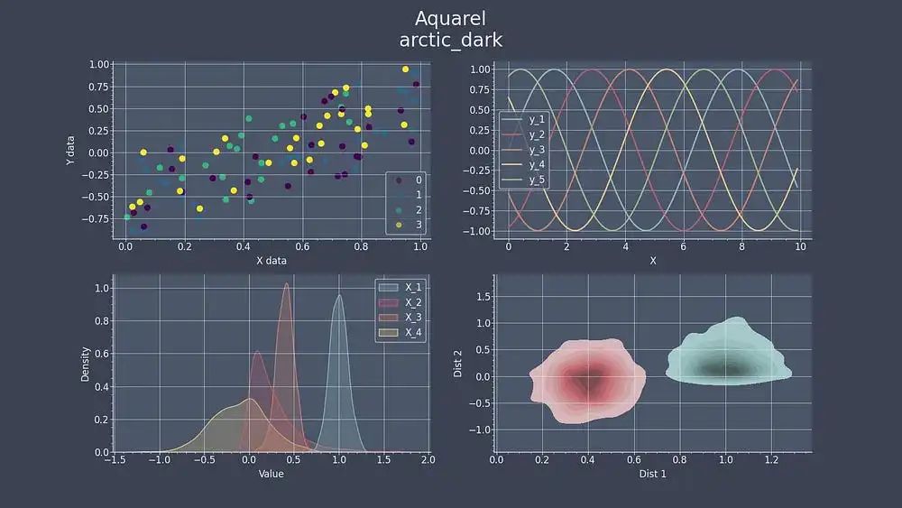 Aquarel库[1]提供11 种不同的样式,包括深色和浅色样式,可使用pip 安装: