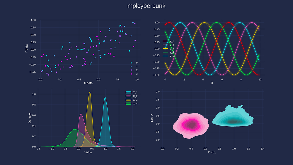 下一个库mplcyberpunk[4]非常有名,每个人都钟爱赛博朋克,这款软件不仅能够提供恰到好处的颜色和背景,还能为图片添加发光效果,绝对让人惊艳!