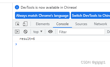 console.log("result="+result); 在"2"的前面加多一个+变为number就得出结果如下