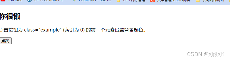 这篇博客演示了一个JavaScript函数,该函数通过点击按钮将class为'example'的元素背景色更改为蓝色。示例中,当用户点击'点我'按钮,页面上class为'example'的<h2>标签背景色会变为蓝色。这个例子展示了querySelectorAll方法在DOM操作中的应用。