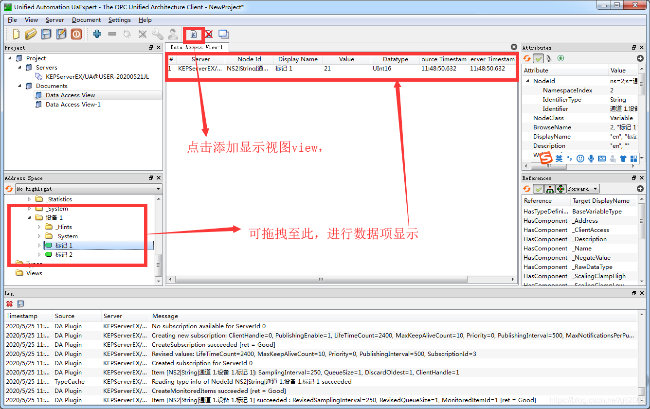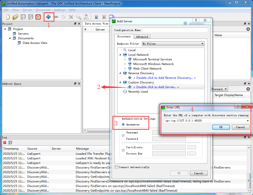 本文介绍了如何配置KepServer并使用UaExpert进行OPC UA连接。首先,详细讲述了KepServer的后台配置,包括端口号设置和允许匿名访问的设置。接着,展示了UaExpert成功连接到KepServer的步骤,并强调了连接成功后的界面显示。此外,还提及了一个简单的Qt+open62541 OPC Client的实现链接。