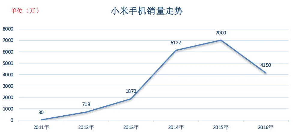 随后小米手机创下了一系列惊人的销售数据,2011年销售30万台,2012年719万台,2013年1870万,2014年6112万台。