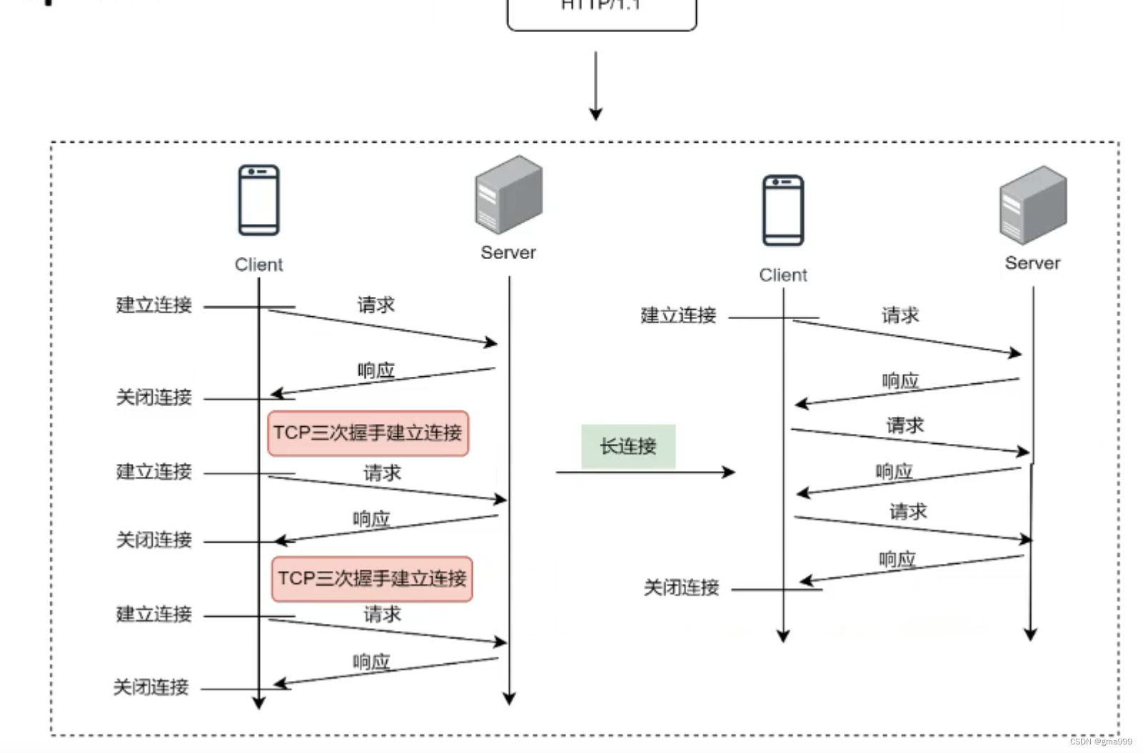 HTTP/1.1 引入了 Keep-Alive 头部,允许在同一个 TCP 连接上复用多个请求和响应,直到客户端或服务器主动关闭连接。这减少了连接建立和关闭的次数,从而提高了传输效率。