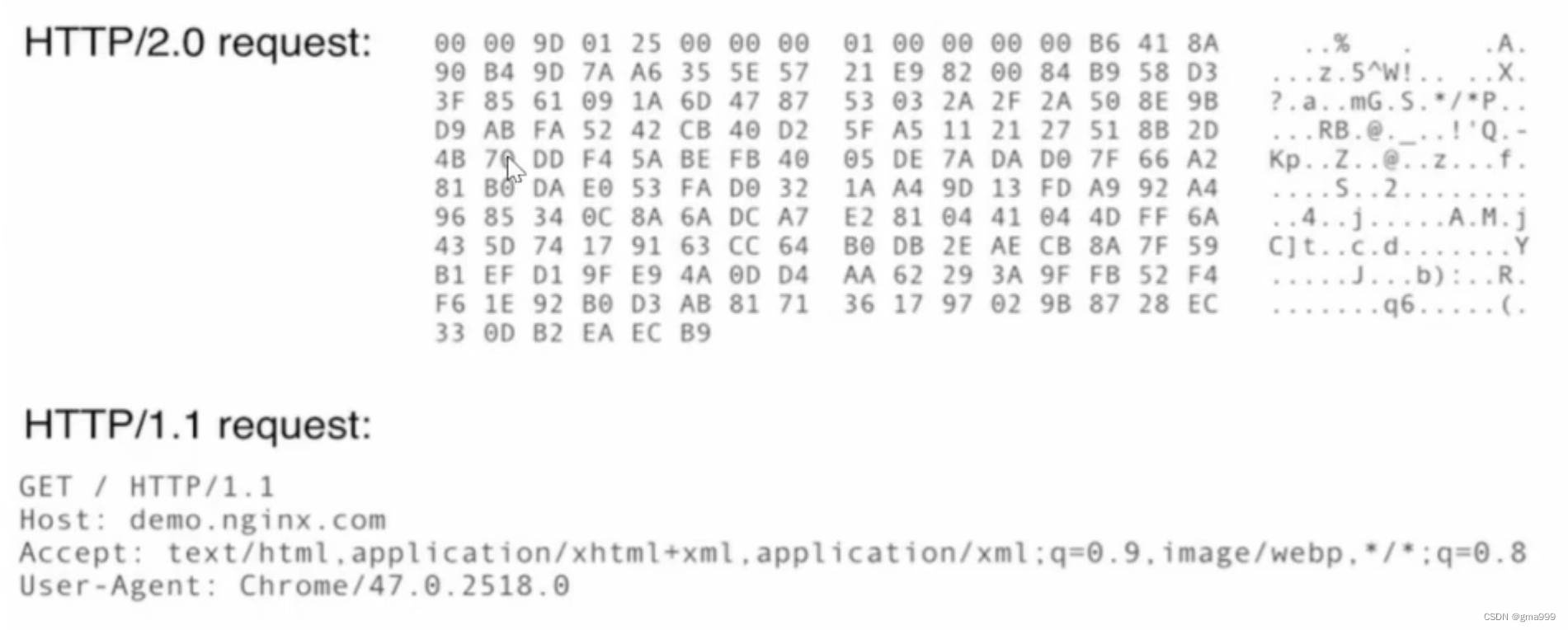 请求的所有信息都是按照二进制形式发送,而不是按照字符串的形式进行发送。