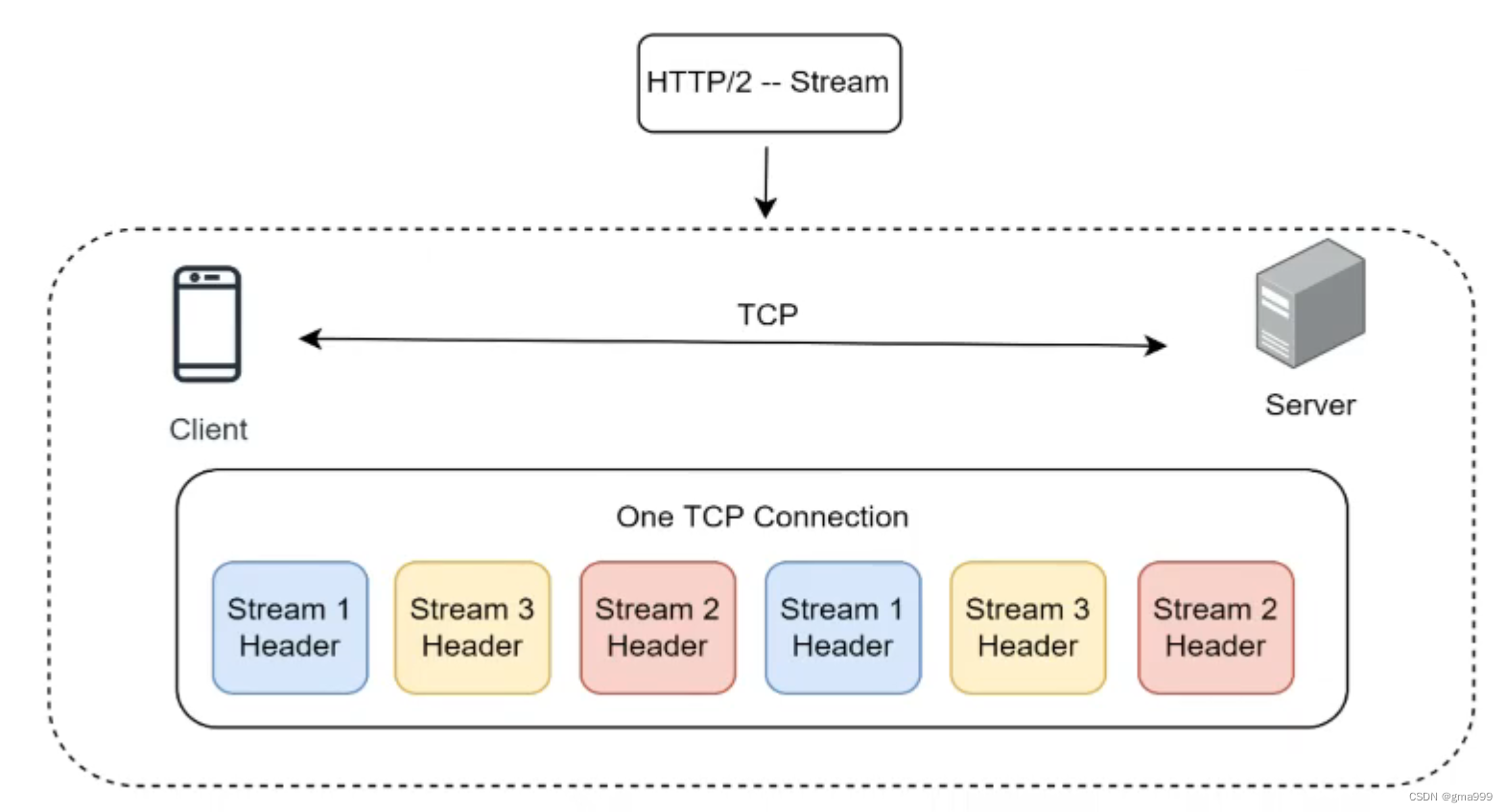 流可以简单的理解成一个请求,将所有的请求混合在一起,同时在TCP连接上进行传输,区分数据包则是使用ID进行区分。