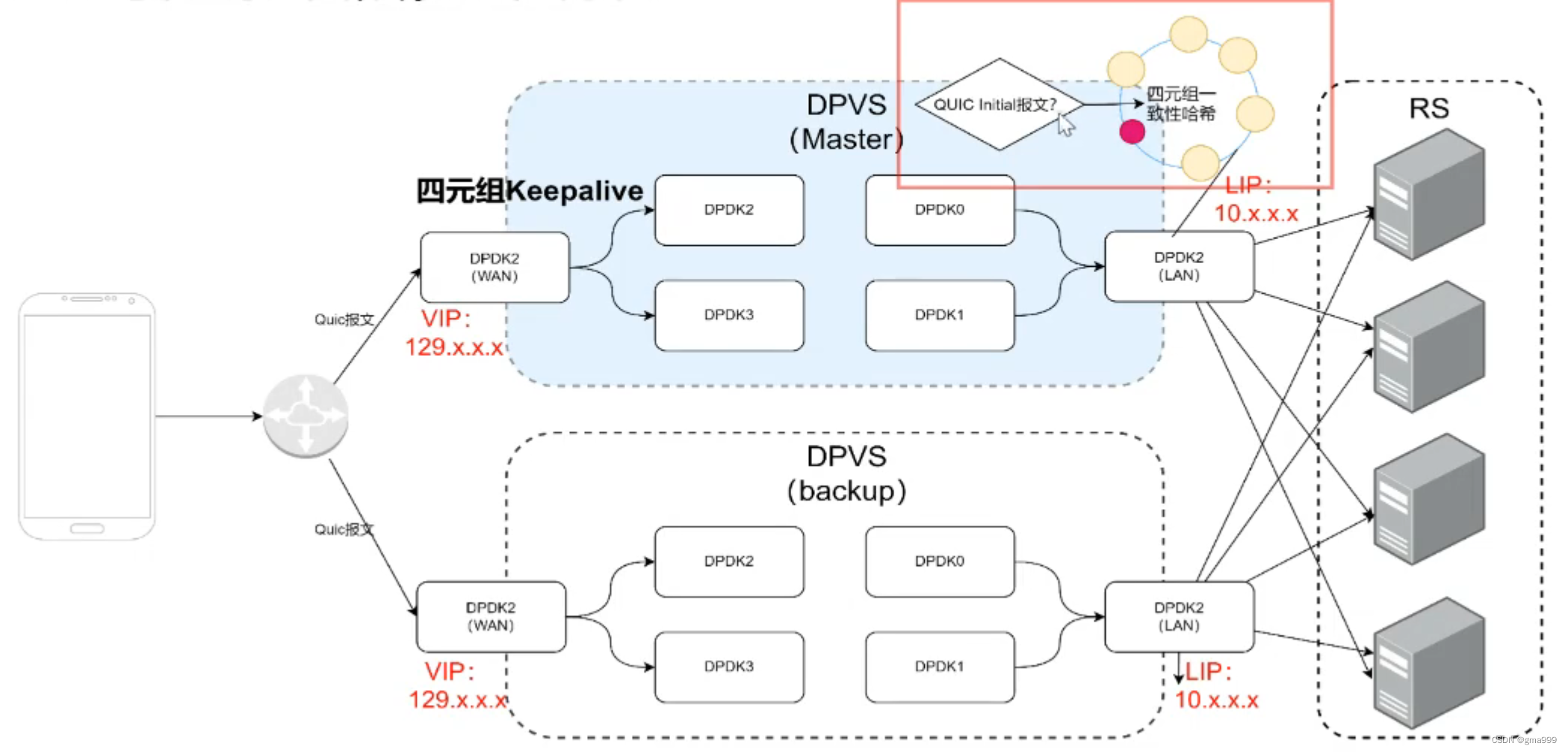 四层负载均衡器修改四元组一致性哈希,同时增加逻辑判断,判断是否为quic报文。