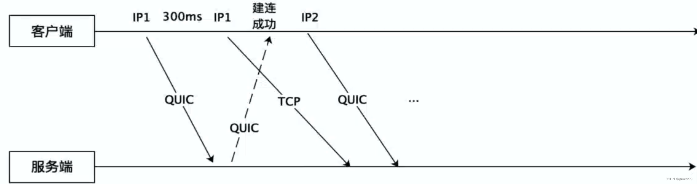 为解决不支持UDP协议的场景,请求连接的时候,同时请求quic和TCP两个连接,哪个连接成功就用哪一个。