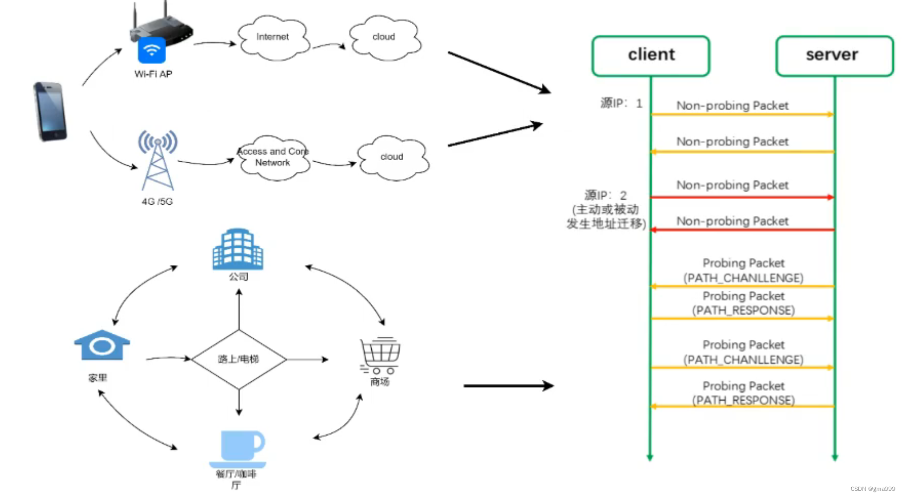 网络切换过程:在连接迁移过程中,客户端和服务器会通过发送探测包(Probing Packet)来确认新路径的可用性。这种机制允许在多种网络环境下保持连接的稳定性和可靠性。