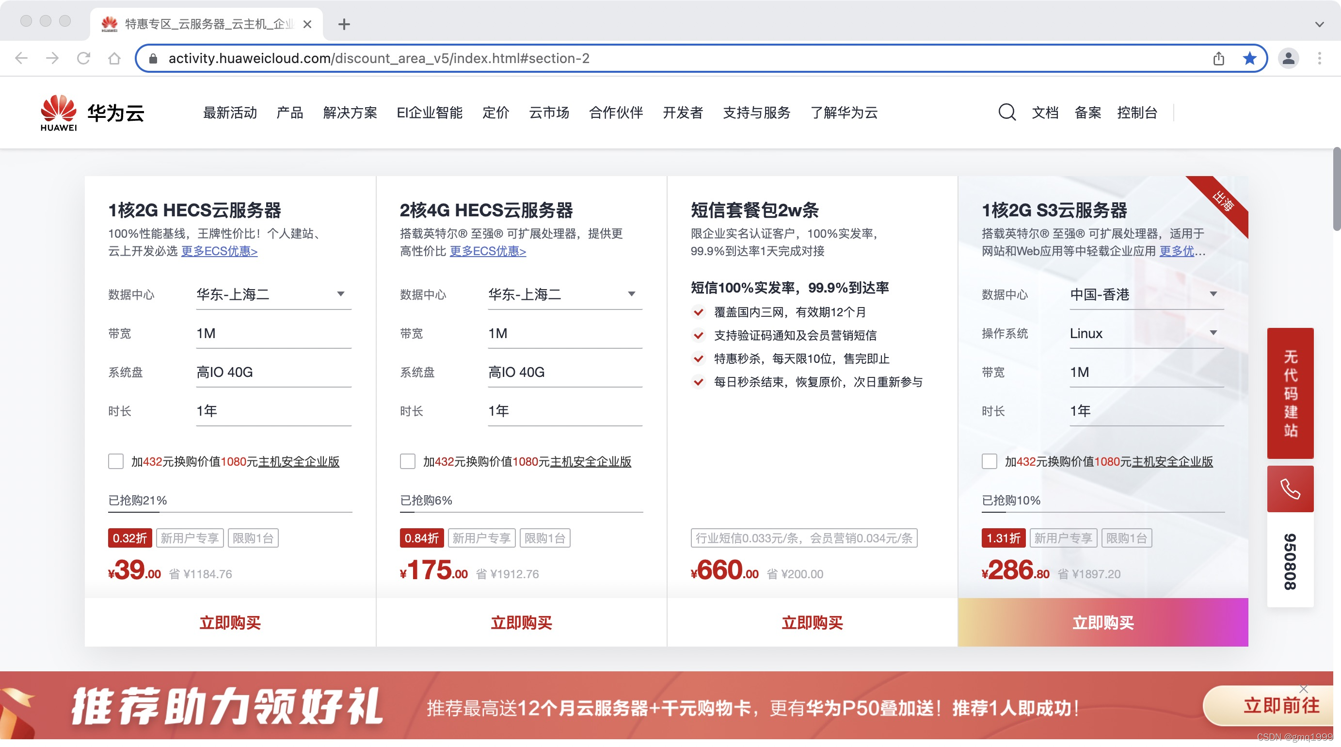 服务器购买地址:特惠专区_云服务器_云主机_企业上云-华为云