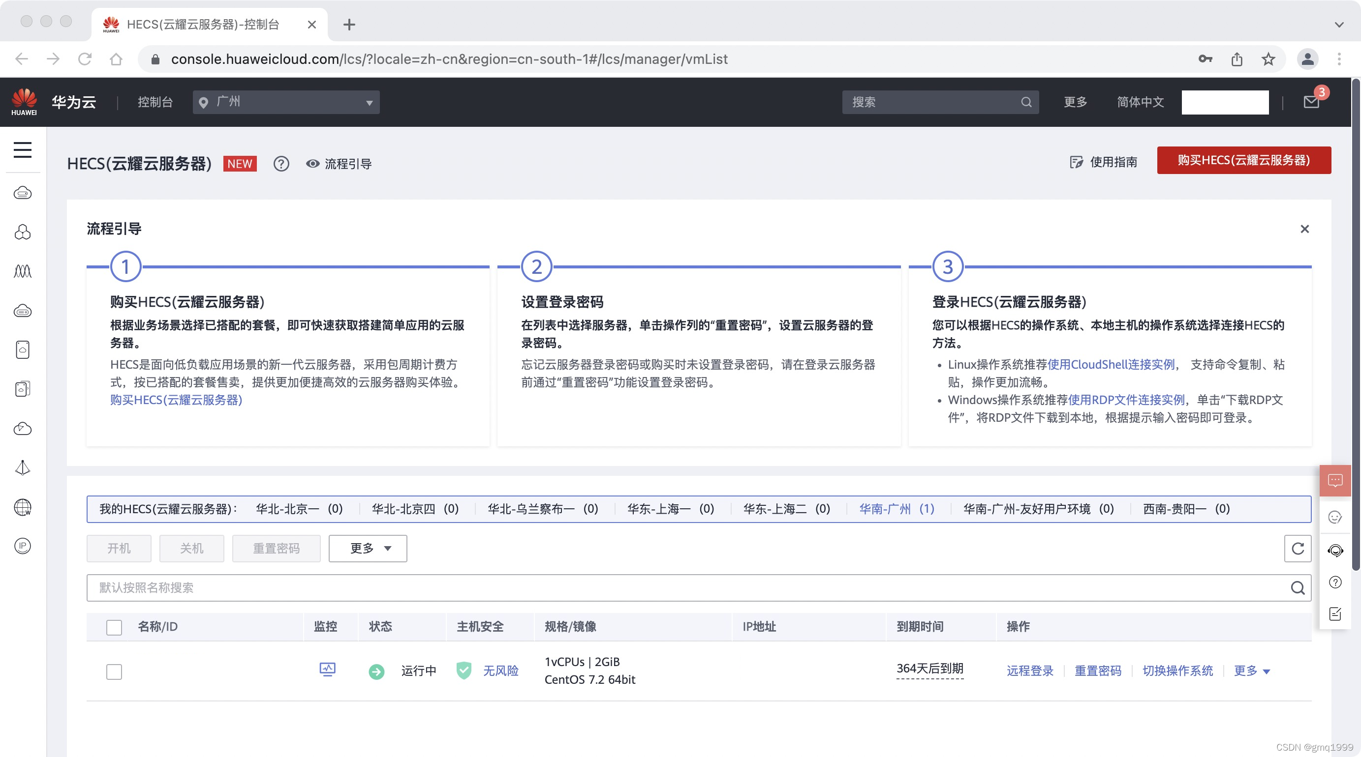 服务器控制台地址:https://console.huaweicloud.com/lcs/?locale=zh-cn®ion=cn-north-1#/lcs/manager/vmList