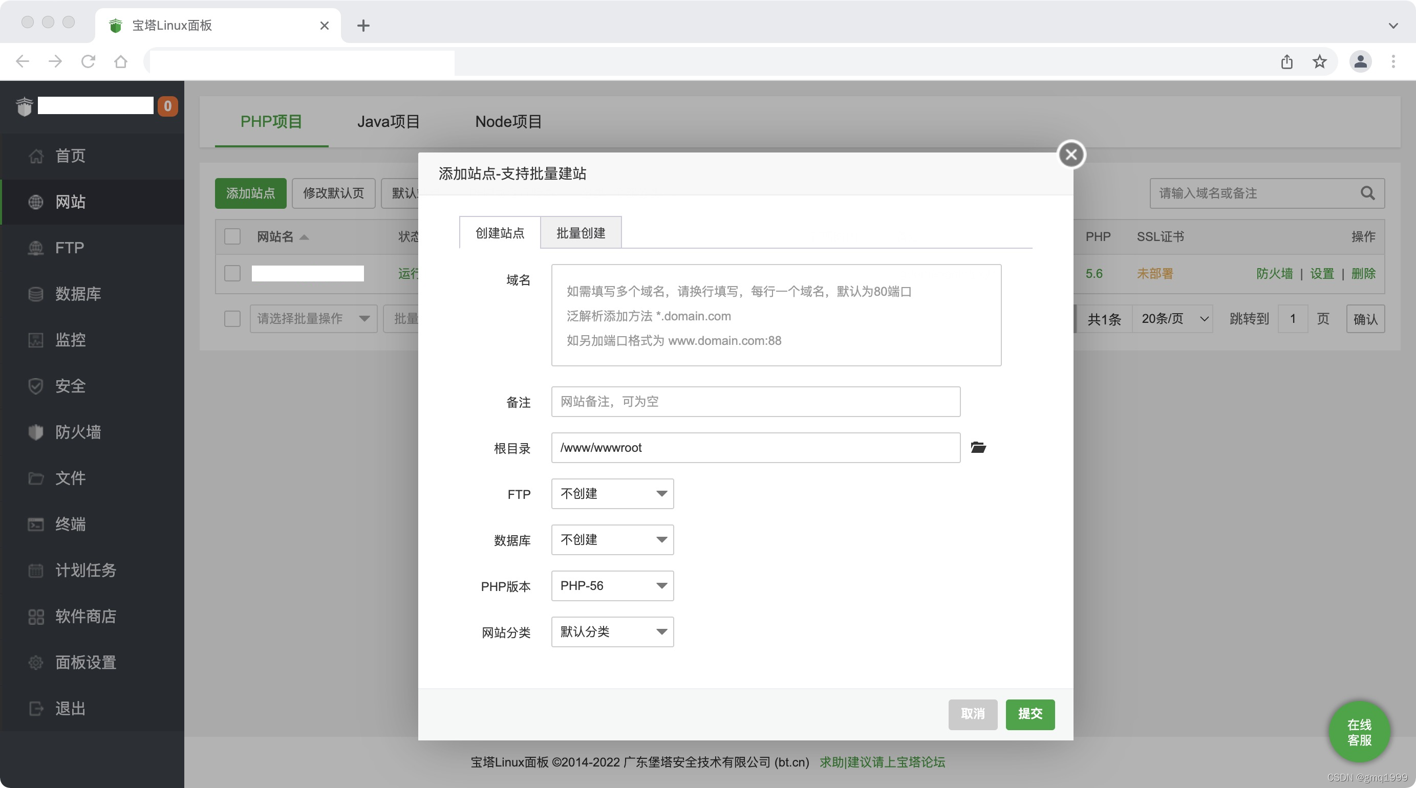 创建站点中的域名可以输入多个域名,如果买的域名是zheshitest.com,那么输入框中可以输入