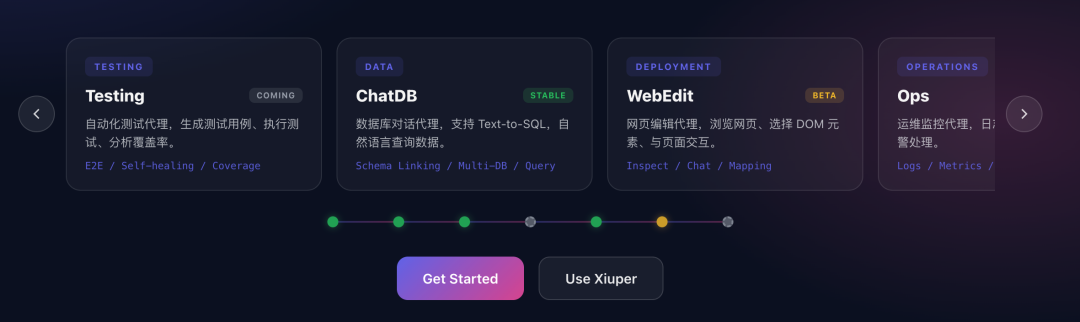 通过统一的多平台架构,Xiuper 确保了开发者无需迁移上下文,AI 能自然地出现在你正在工作的地方,无缝支持整个 SDLC 的每一步操作。