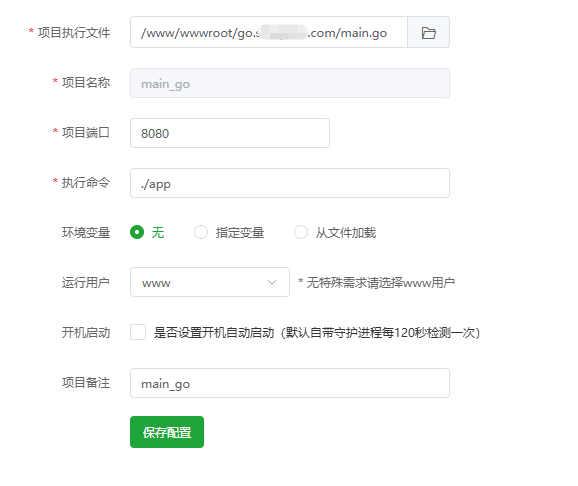 - 5、最后回到宝塔Go项目管理器,将执行命令设置为 ./app 并运行