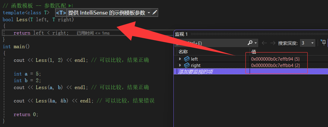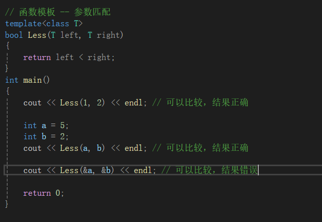 4. 函数形参表: 必须要和模板函数的基础参数类型完全相同,如果不同编译器可能会报一些奇怪的错误