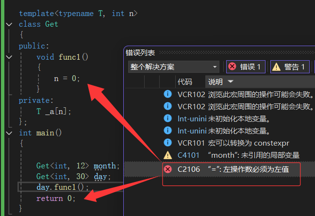 上面我们说非类型形参是一个常量,那么我们该怎么去证明它就是一个常量呢?