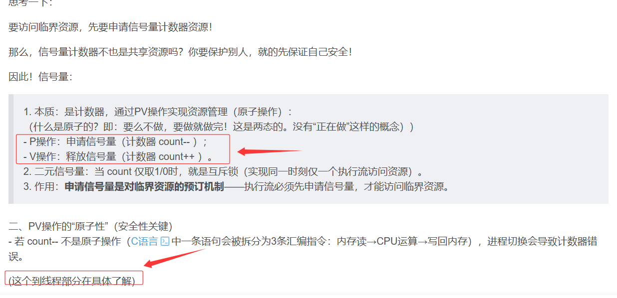 本质是用来描述资源数目的,把资源是否就绪放在了临界区之外,申请信号量时,其实就间接的已经在做判断了!