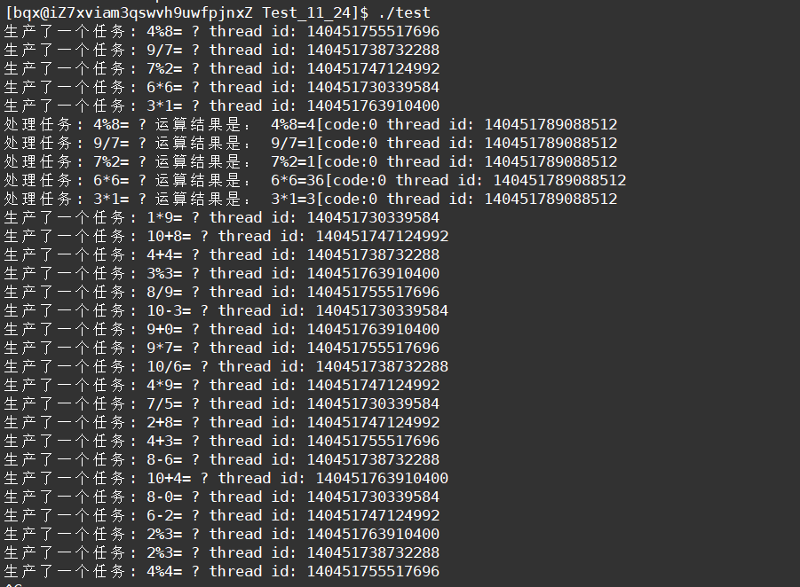 std::cout << "生产了一个任务: " << t.GetTask() << " thread id: " << pthread_self() << std::endl;