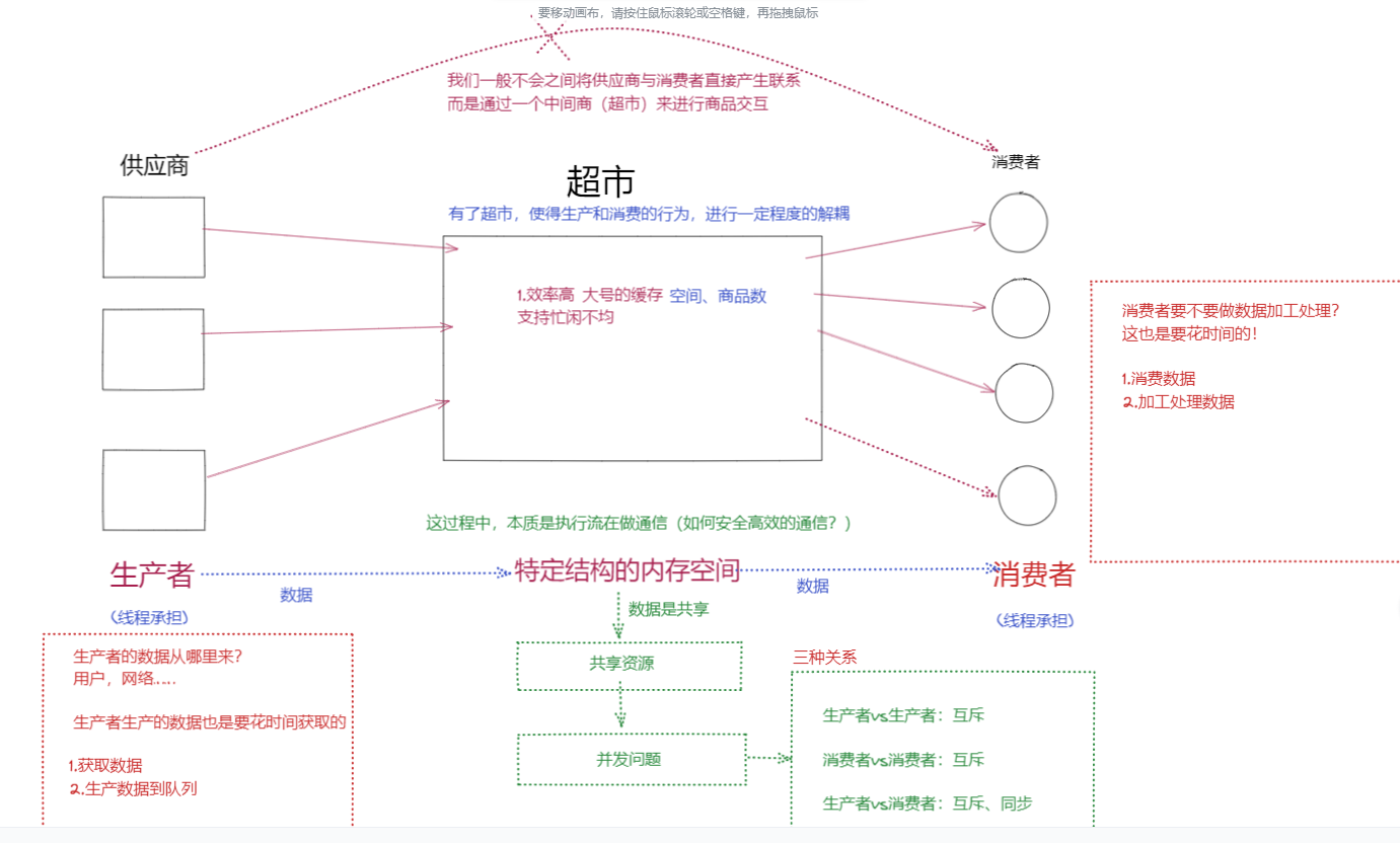 3种关系:生产者与生产者、消费者与消费者、生产者与消费者。