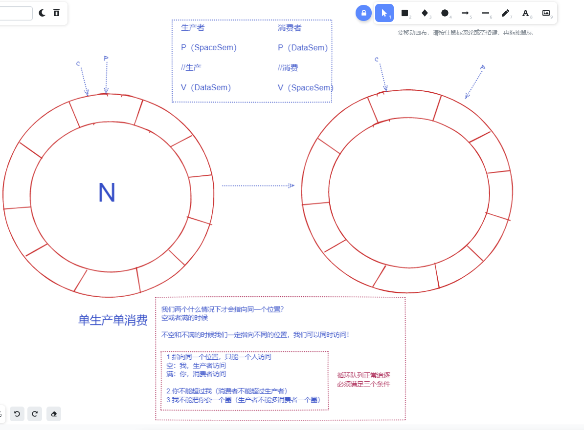 现在,我们用图片来显示什么是环形队列的生产消费模型: