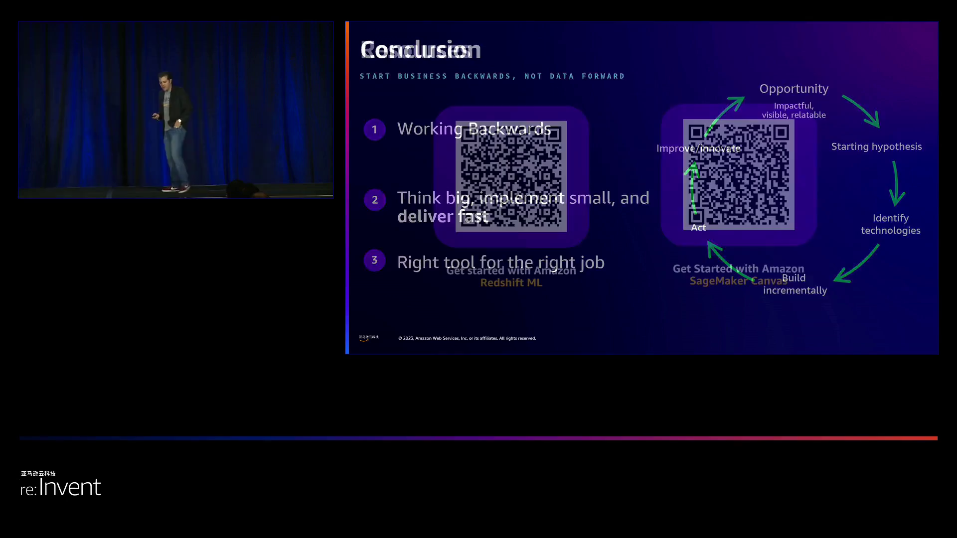 尽管资源有限,但来自亚马逊云科技的两位数据驱动的解决方案架构师Pablo和Deepthi为寻求加速其AI/ML之旅的小型企业提供建议。首先,他们强调了从客户需求和有形商业价值出发的重要性。小型企业必须实施机制,严格优先排序能带来可衡量收益的高价值使用案例。这意味着从“建立数据湖”等泛泛而谈的想法转向关注“提高收入10%”等实际成果。其次,Pablo和Deepthi建议利用易于非专业人士使用的低代码和无代码亚马逊云科技服务。丰富的选项允许小型企业将其工具与其团队的技能相匹配,无论是SQL、编码还是拖放界面。易用性对不同组织来说意味着不同的东西,取决于他们的优势。最后,他们建议从小处开始,快速实施并尽快提供价值。小型企业应找出实现初始价值的最短路径,在小规模上证明该使用案例,然后逐步扩展。