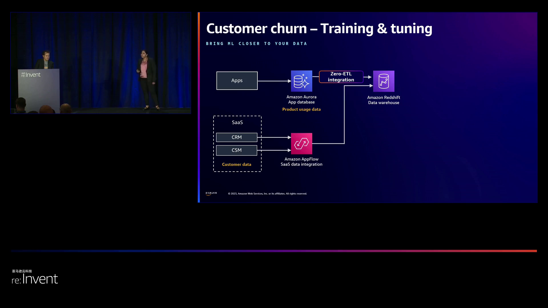 关键字: [Amazon Web Services re:Invent 2023, Amazon SageMaker, Machine Learning Process, Low Code Services, Data Integration, Build Machine Learning Models, Customer Churn Predictions]
