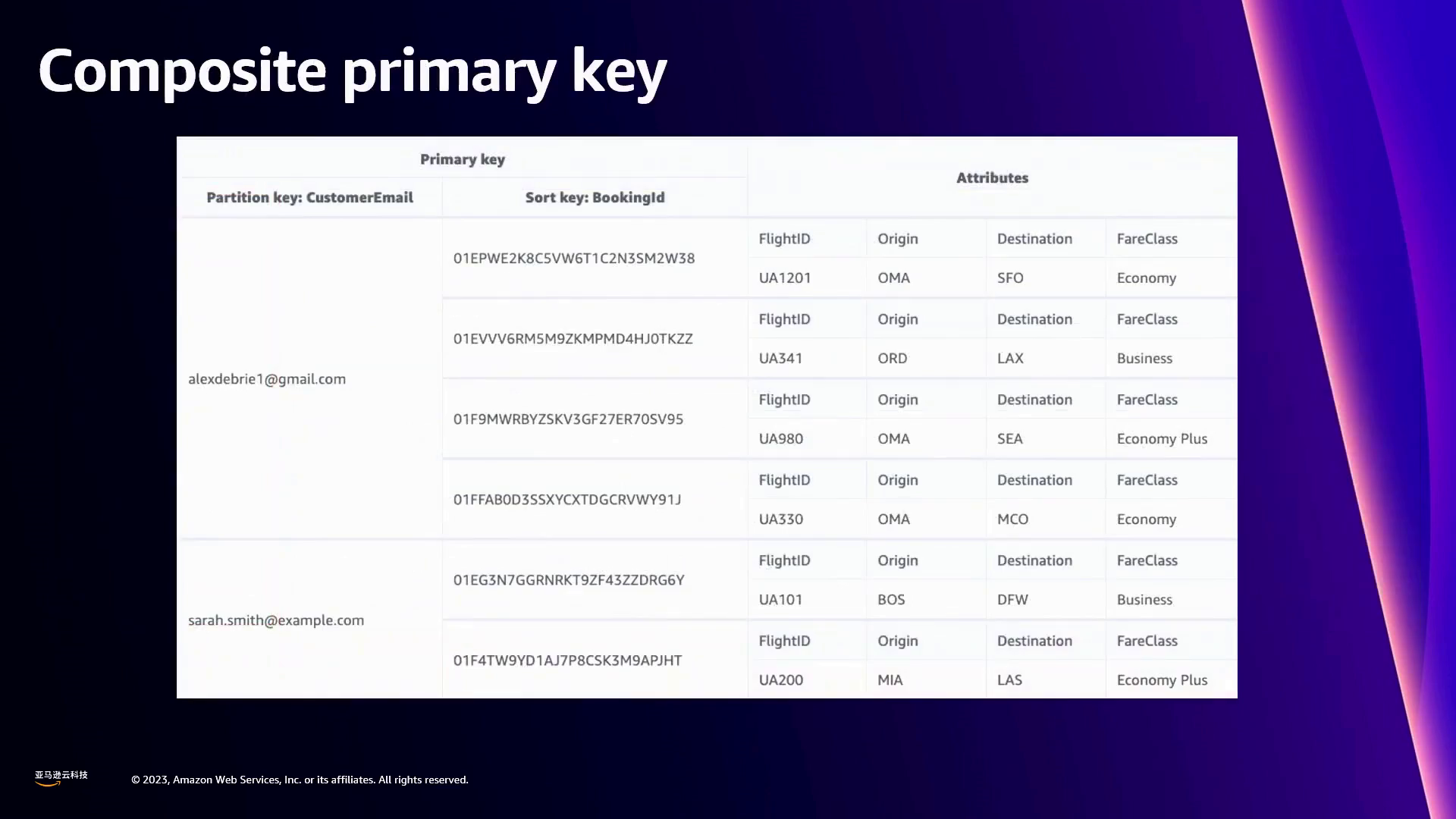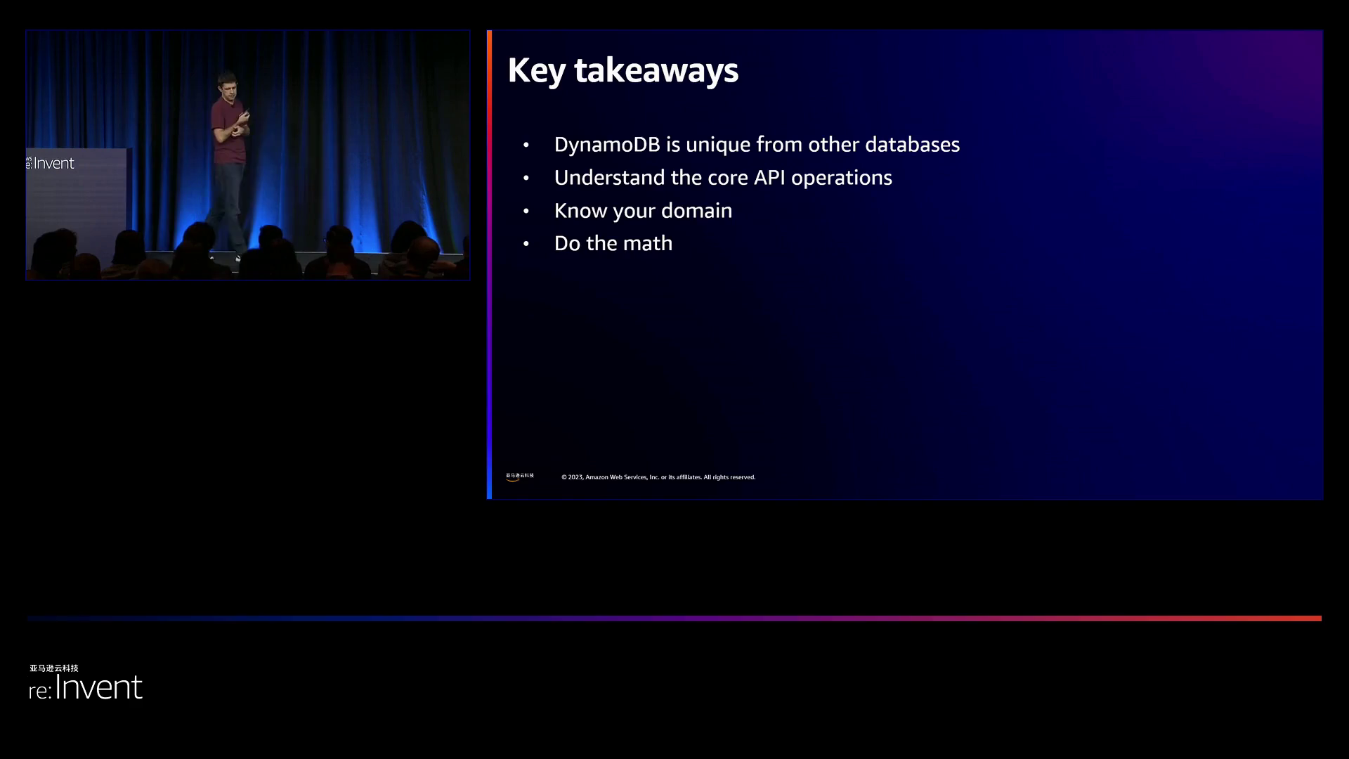 关键字: [Amazon Web Services re:Invent 2023, DynamoDB, Dynamodb Basics, Primary Keys, Condition Expressions, Complex Filtering, External Systems]