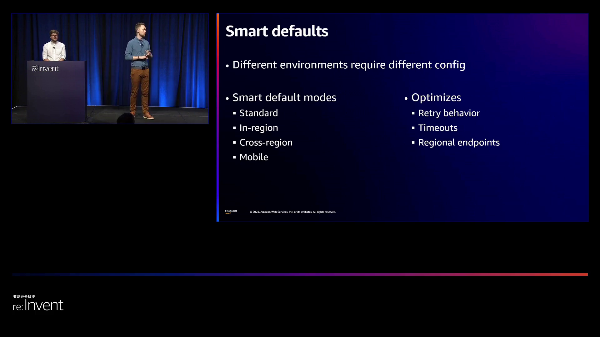 领导者解释了亚马逊云科技如何配置区域内部调用的严格超时以快速失败并实现快速重试。