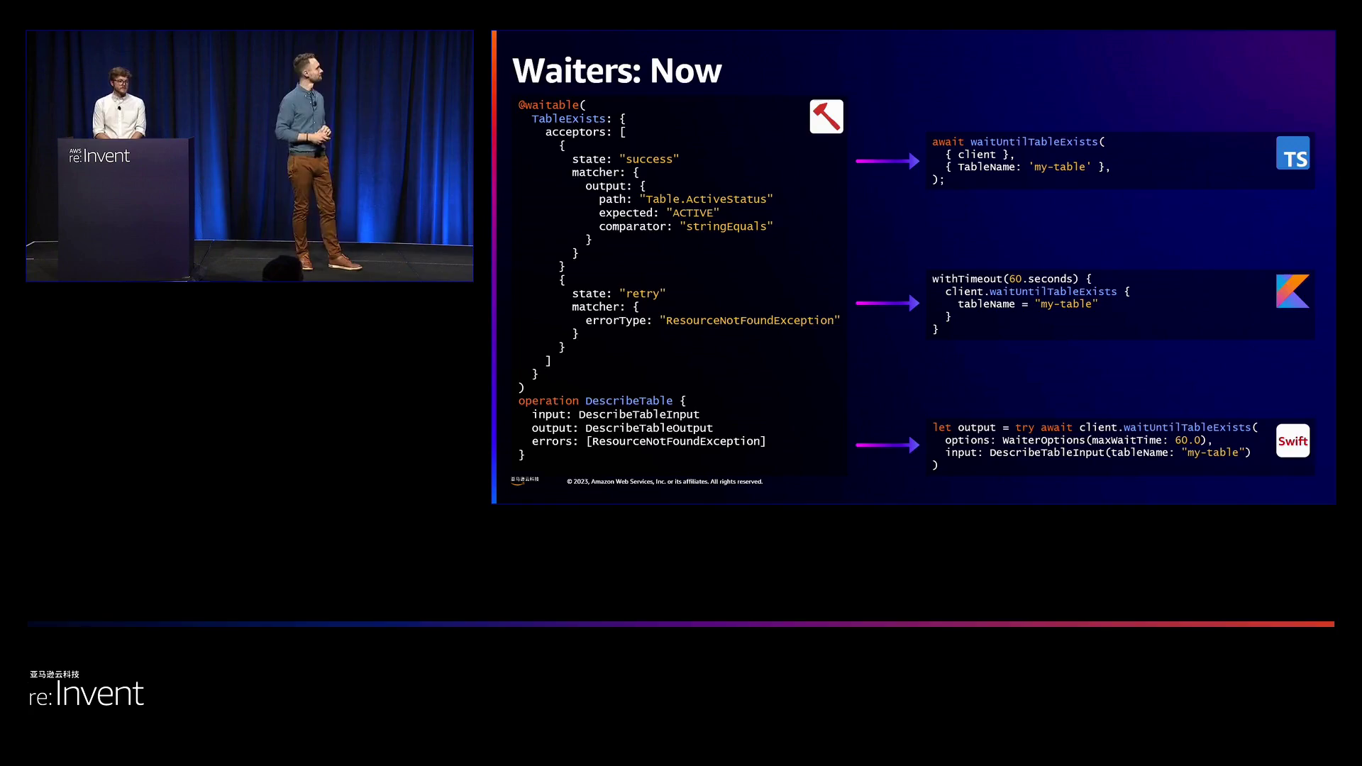 关键字: [Amazon Web Services re:Invent 2023, Smithy, Model Driven Api Development, Amazon Web Services Sdk Features, Smithy Architecture, Request Pipeline, Observability]
