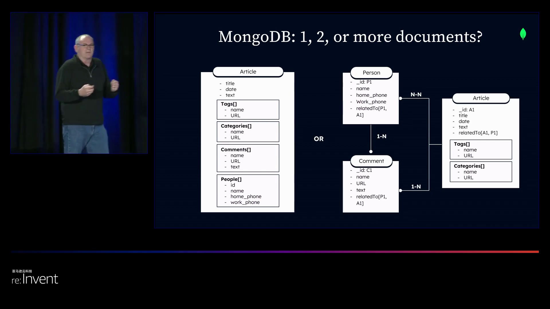 关键字: [Amazon Web Services re:Invent 2023, MongoDB, Data Modeling, Access Patterns, Embedded Documents, Workload Optimization, Schema Design]