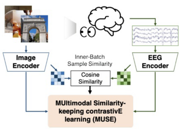 文章提出了一种名为多模态相似性保持对比学习(MUSE) 的框架,旨在实现基于EEG的图像分类。