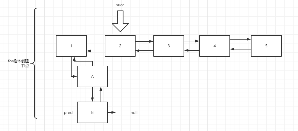 // 此时succ=null,pred=last(list的最后一个元素),这里可能有点点绕,举个栗子