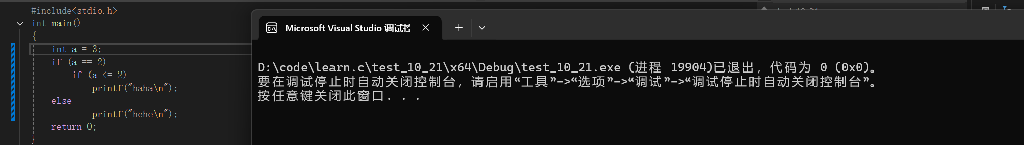 在这个例子中不会输出任何值,是因为else会和离自己最近,且还没有其他else配对的if来进行配对,所以此处a不等于2,无法进入if控制的语句,而else又和第二个if配对,所以不输出任何值(if...else算一个语句)