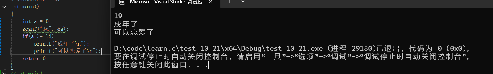 当if后的表达式为真时,需要执行的语句往往不止一条,但如果我们直接输入,计算机不知道哪里之后就不是if包含的语句了,所以我们需要用{}来表明我们需要执行的语句例如: