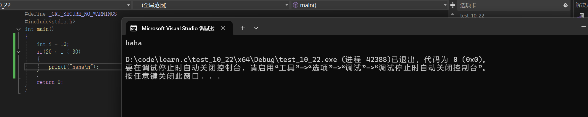 当我们输入20 < i <30时,20 < 10为假,返回一个值为0,再比较0 < 30为真所以if恒为真。所以如果要规定一个未知数的上下界需要用到逻辑操作符