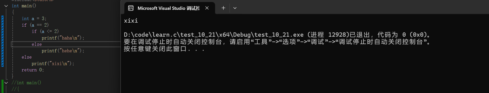 此时的最下方的else由于中间的if和else最近,他们已经完成配对,所以只能和最近且没有进行配对的第一个if配对,所以会输出else下的语句