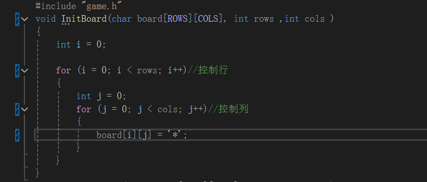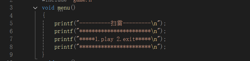 这里就将game.h这个文件与main.c串起来了,当然,在game.c中的函数声明也可以被main函数调用了
