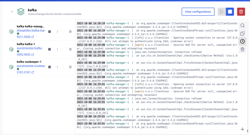 - 启动顺序zookeeper、kafka、kafkaManager,在depends_on中已经写好启动的依赖;