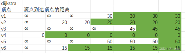 dist[1]=30,dist[5]=50,//v2与v5,v2与v1相邻,需重新计算v4到v5,v1的路径长度