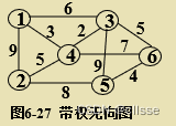 如图6-27,先取此时权值最小的边(4,3),然后依次取(4,1),(5,6),(3,6),(4,2)。