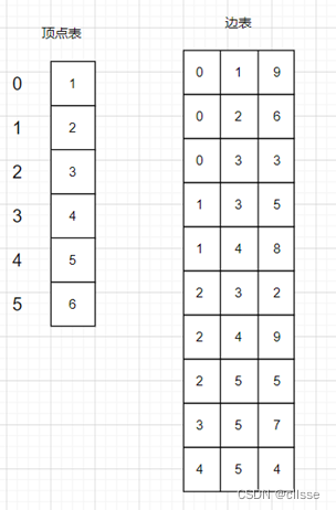 顶点表:左侧为编号,右侧为结点名。