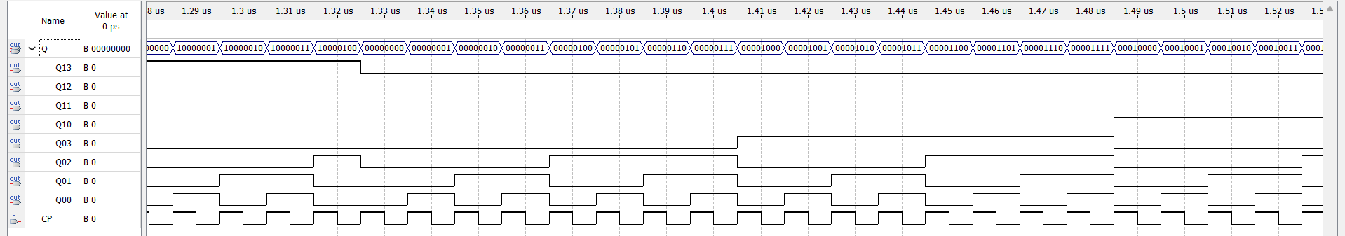 最终原理图如下,用led灯和7段数码管显示结果。(注意低位Q0,高位Q20开始,你的图可能跟我不一样,引脚别接反了)