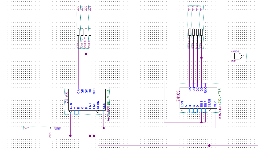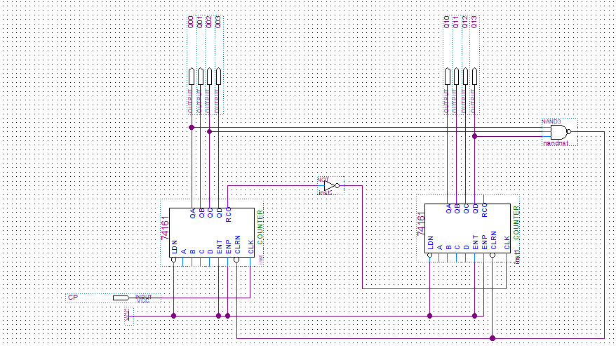 而使用74163时,因为它是16进制计数器,采用同步清零,故CP采用同步接法。