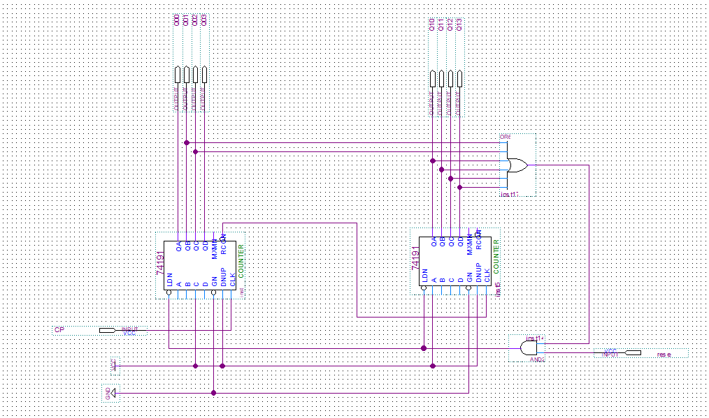 - 熟悉同步十进制加计数器74160的应用与设计。使用两片74160和门电路设计一个显示27-35的加计数器。