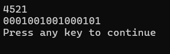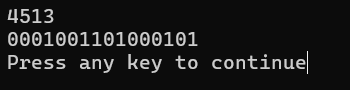 (3)以二进制形式输出到控制台。比如1345输出0001001101000101。