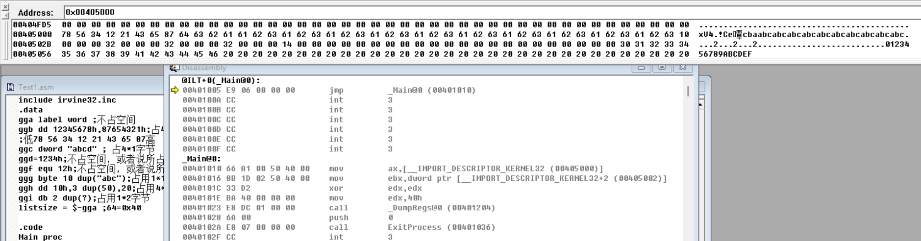 mov ebx,[ggb+2];ebx=43211234h,内存中的高位放在ebx高位