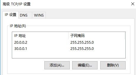 然后在虚拟机B上新建静态路由,目标30.0.0.0,网关20.0.0.2