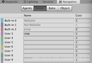 - 在烘焙时,选择物体,设置Navigation Area成需要的遮罩层